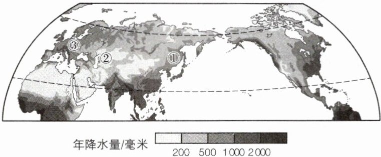 6. ①②③三地降水量按由大到小的顺序,排列正确的是(