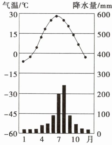 12. 读 Q 地气温曲线和降水量柱状图,回答第 12 题。