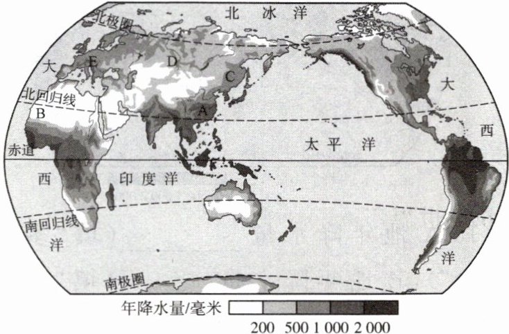 4. 读世界年降水量分布图,下列对世界降水分布情况的描述,错误的是(
