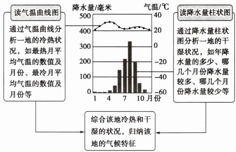 状况;读降水量柱状图,可以分析一地的干湿