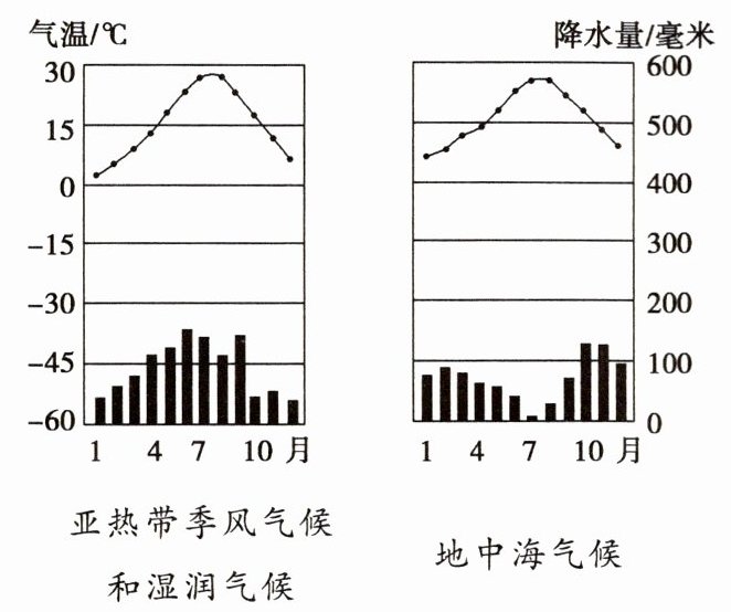 亚热带季风气候和湿润气候的特征: