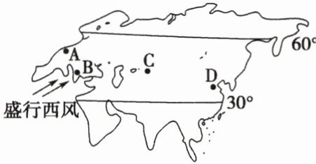 1.读下图,判断下列气候类型从A→B→C→D 的组合正确的是 (