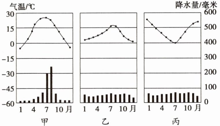 (1)甲、乙、丙三地中气温年较差最大的