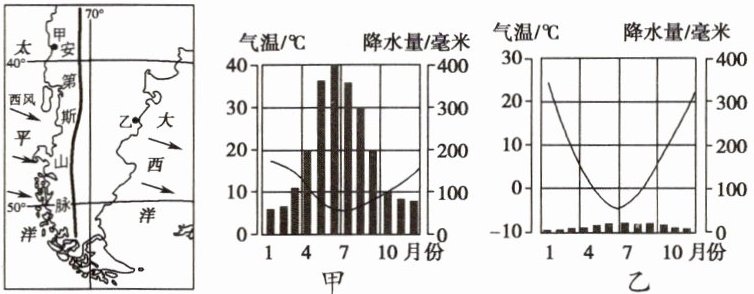 6. 下图为某大洲局部地区地形和气候资料图。下列关于甲、乙两地气候类型和特征的叙述,正确的是(