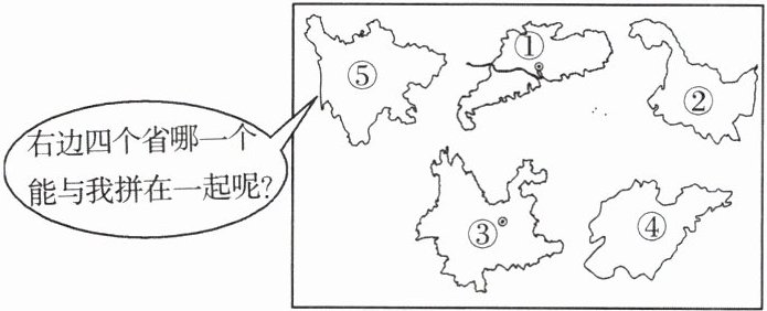 7. 在做我国省级行政区拼图游戏时,与⑤省南侧相邻的省是(
