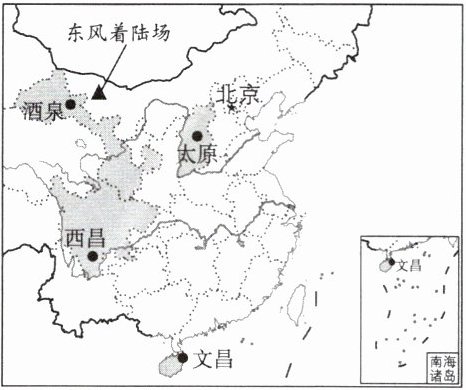 读我国四大航天发射场和东风着陆场位置示意图,完成5~6题。