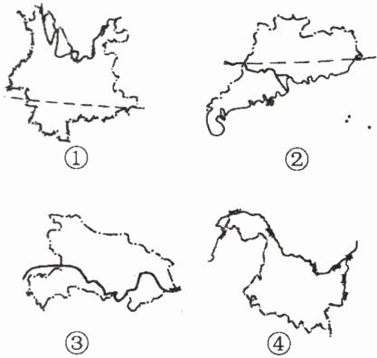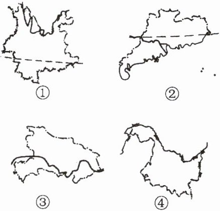 读我国四个省级行政区轮廓图及流经河流图,完成1~2题。