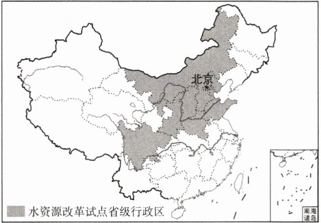 2024年12月1日起,我国全面实施水资源费改税试点,将水资源税由原来的10个省级行政区推向全国31个省级行政区。下图示意中国此前实施水资源税改革试点的10个省级行政区分布。据此,完成18~19题。