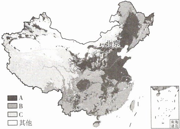 。(2)A主要分布在东部湿润区、