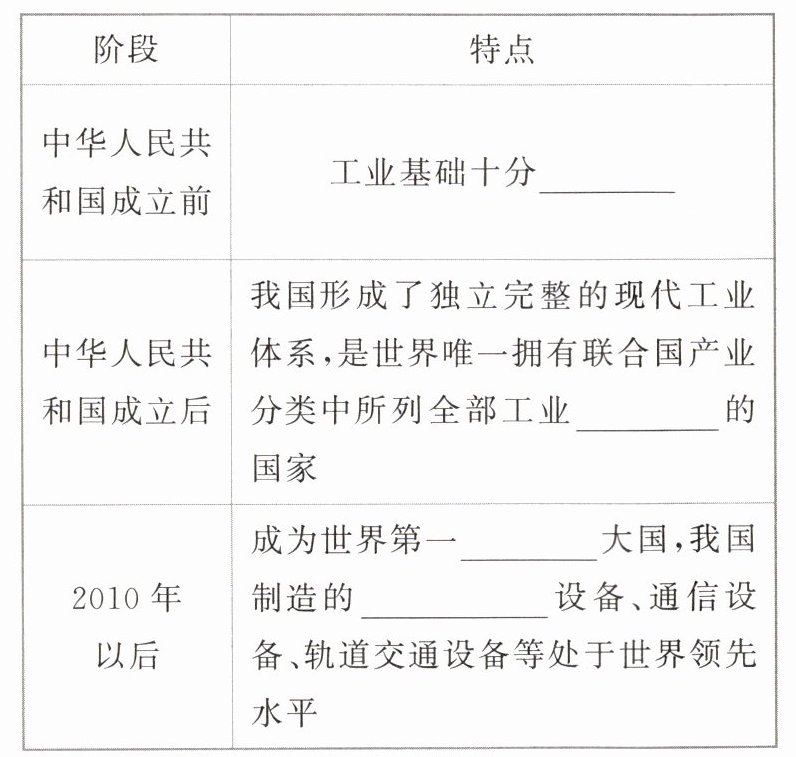 1.自然资源 加工 再加工 2.发达 3.薄弱 门类 工业制造 发电与输电 4.纺织品 高新技术
