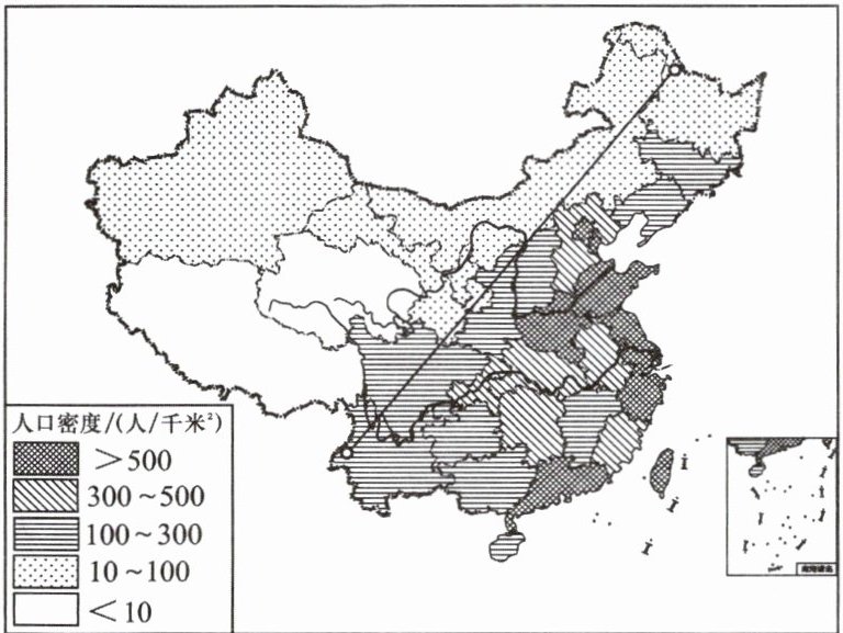 一线为界,该线东南部人口多、人口密度大