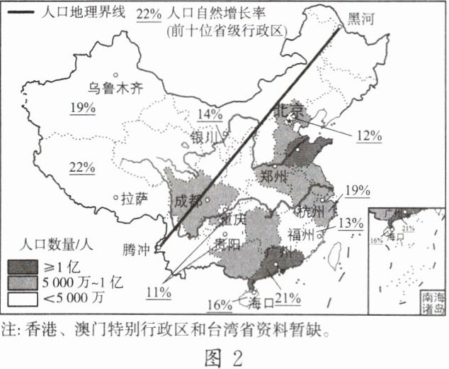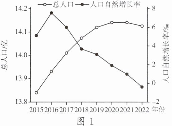 (1)读图1可知,2016年后我国人口增长速度逐渐变