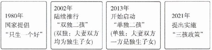 小明收集制作了一部分中国改革开放以来人口政策变化的知识卡片,完成7~8题。