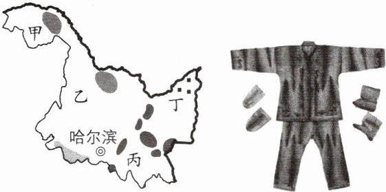 1. 赫哲族生活的区域位于图中甲、乙、丙、丁四地中的(