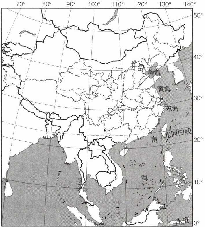 诗歌《我们爱你啊,中国》中写道:“当灿烂的太阳跳出东海的碧波,帕米尔高原依然是群星闪烁;当北国还是银装素裹的世界,南疆早已洋溢着盎然的春色。”读中国在亚洲的位置图,完成5~6题。
