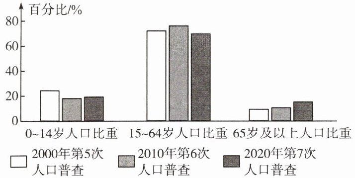 近十年来,我国人口保持低速增长态势,2022年首次出现负增长。我国2016年起实施“全面二孩”政策,2021年实施“三孩”政策。下图为我国2000年至2020年人口普查情况统计图。据此,完成13~14题。