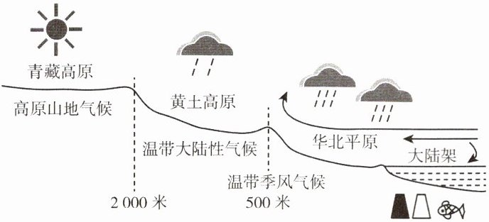 )①黄土高原地势比华北平原低 ②我国东西部地区降水差异显著 ③我国地势西高东低 ④我国沿海大陆架资源匮乏