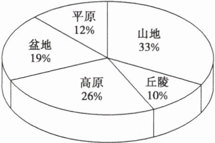 1. 下图是我国各类地形面积的比例图,从图中可以得出的信息是 (