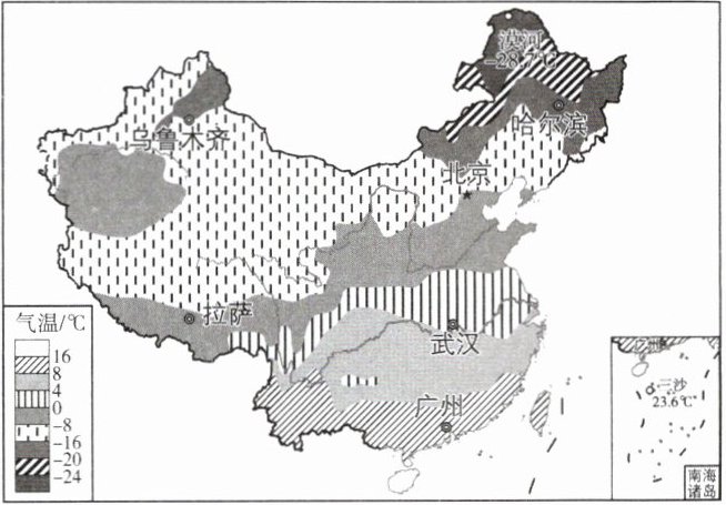 - 读我国1月平均气温分布图,完成4~5题。