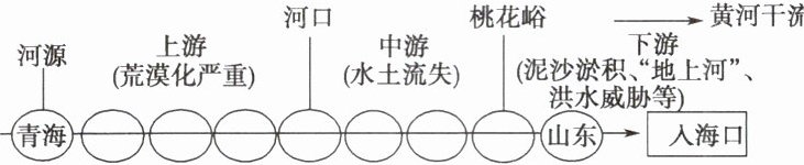 1. 下图是黄河干流各河段主要的生态环境问题示意图,据图判断下列叙述错误的是(