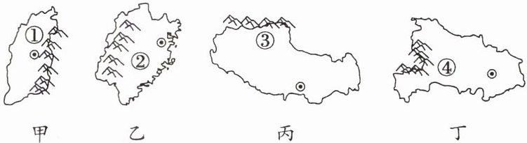 读省级行政区轮廓简图及相关山脉图,完成11~12题。