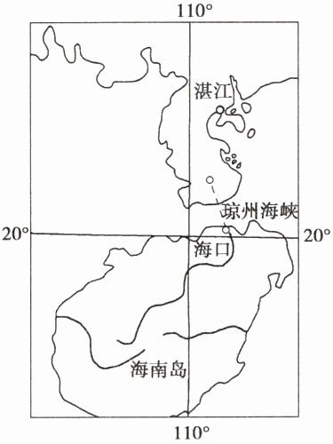 电视连续剧《解放海南岛》中,多次提到一句台词:"部队(驻扎在湛江)必须在春分前登岛。"结合下图,完成13~14题。