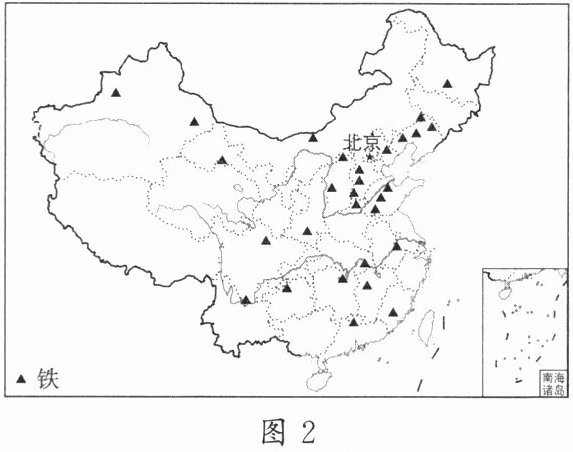 图1为我国煤矿分布图,图2为我国铁矿分布图。读图,完成1~2题。