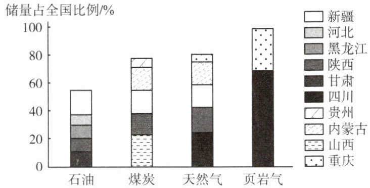 近年来,我国不断推进矿业领域绿色发展,矿产资源的勘探开发取得重要进展。下图为我国已探明的主要能源矿产储量地区分布图(注:页岩气是蕴藏于页岩层可供开采的天然气资源)。读图,完成2~3题。