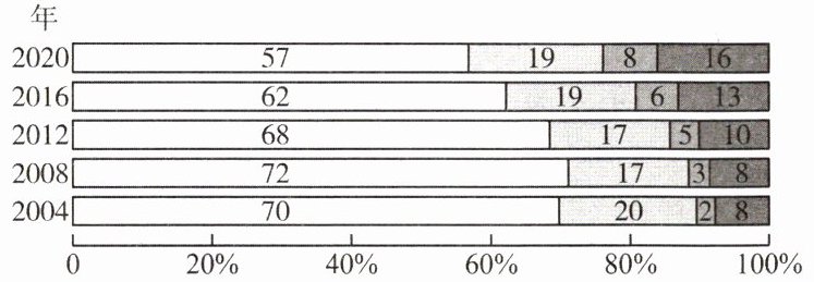 读我国2004~2020年能源消费占比构成图,完成6~7题。