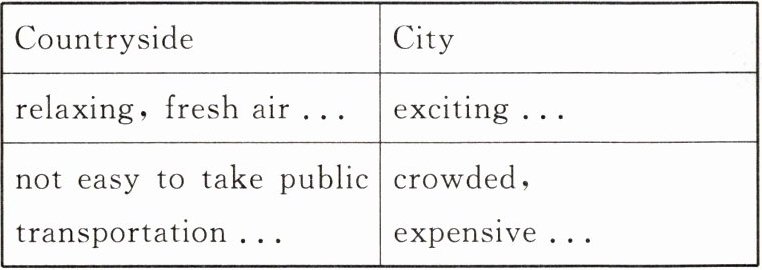 在英语课上,老师组织了一次题为“Do you like a trip to the countryside or to the city?"的话题讨论。请你根据小组讨论结果,写一篇英语短文,介绍两者的特点,并写出你的选择与理由。