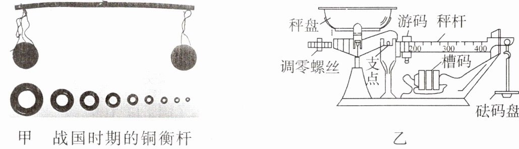 如图乙所示与上文中的铜衡杆类似,有些商店里使用一种台秤,它的工作原理与天平相同,不过两臂长度不同。