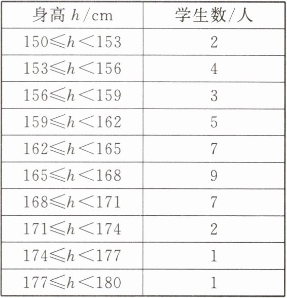 3. 某班学生体检后,以身高每相差3cm为一组,用列表方式统计如图甲所示。