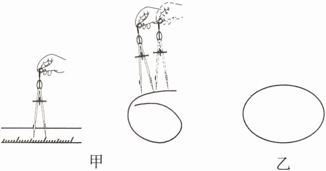 2. 粗略测量曲线长度时,可以认为曲线由许多小线段组成。用刻度尺测出一小段线段的长度,再测出曲线的线段数,用小线段的长度值乘以线段数(图甲),就是曲线的长度。请用这个方法测量图乙所示的椭圆的周长。