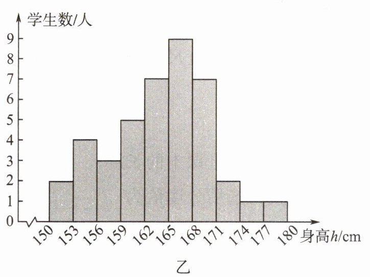 根据上述表格数据绘制直方图,如图乙所示。请仔细观察直方图完成下列填空。
