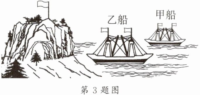 3. 如图所示是小明同学拍摄的一幅海边风景照片,请根据照片所示的情景判断甲、乙两船相对于地面可能的运动状态: