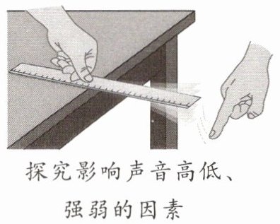 控制变量 如图所示,用钢尺做实验,探究影响声音高低、强弱的因素。
