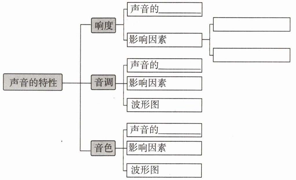 响度:强弱或大小;振幅、距离发声体的远近;音调:高低;频率;振动快慢;音色:品质与特色;发声体的材料和结构;波形形状