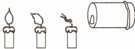 7. 将一只可乐瓶去掉瓶底,在瓶底开口处蒙上橡皮膜并扎紧,将三支点燃的蜡烛排列在瓶口前,对着火焰敲橡皮膜,如图所示。可以看到烛焰出现的现象是