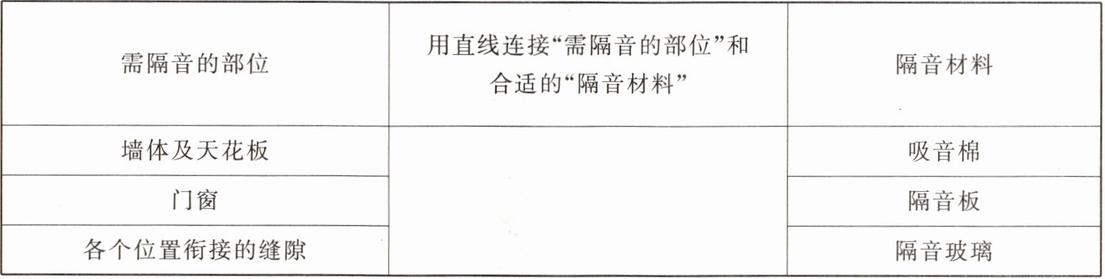 (2)小明基于所学知识,与爸爸一同将这个大任务细化为多个小任务,包括:选定需要隔音的部位、确定测试隔音效果的方法、关注声音的传播路径等。你认为他们还需要补充完成的任务是