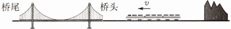 12. 如图所示,长度为 100 m 的火车远离山崖匀速驶向一座大桥,当车头距离桥头 200 m 时鸣笛,5 s 后车头到达桥头,同时,车头的司机听到来自山崖的回声。火车又用 0.5 min 完全通过了该大桥,声音在空气中的传播速度为 340 m/s,求: