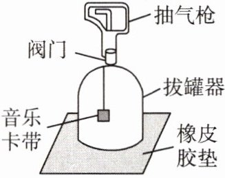 2. 物理老师自制了“探究真空是否可以传声”的简易装置如图所示,实验时将正在发声的音乐卡带固定在拔罐器内,用抽气枪逐步抽出罐内空气。关于该实验,下列说法正确的是(