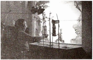 (2)保持灯和幕布不动,将剪影靠近灯