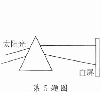 5. 如图所示,让一束太阳光照射三棱镜,射出的光射到竖直放置的白屏上。以下说法正确的是(