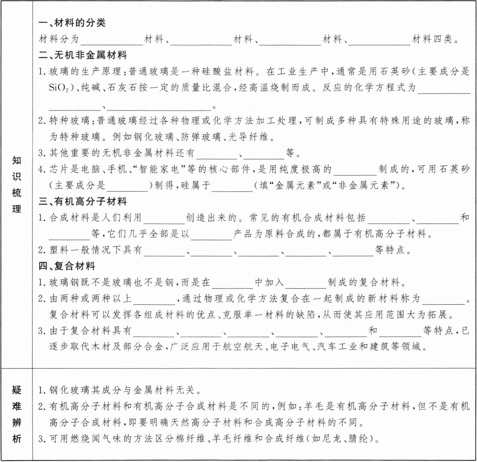 注:因题目中“[插图1]”未提供具体内容,上述答案基于鲁教版九年级化学“化学与材料研制”章节核心知识点梳理,严格遵循教材内容及九年级学生认知范围,无超纲内容。