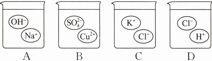 1. 下图是几种常见物质溶于水后发生解离的微观示意图,其中能使紫色石蕊试液变红的是(