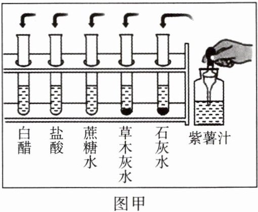 (1)把自制的紫色紫薯汁按如图甲所示的方式分别滴加到试管中,观察到的现象如下表所示: