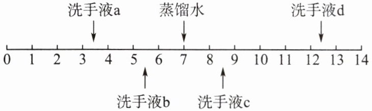 8. 不同品牌的洗手液的pH一般不同,25℃时,四种洗手液的pH如图所示。下列说法错误的是(