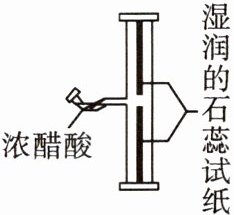 9. 如图所示,在粗玻璃管内壁黏附着湿润的石蕊试纸,向细玻璃管里滴入数滴浓醋酸后,立即封闭管口,10s后观察到仅有中下部的石蕊试纸从上往下逐渐变色。