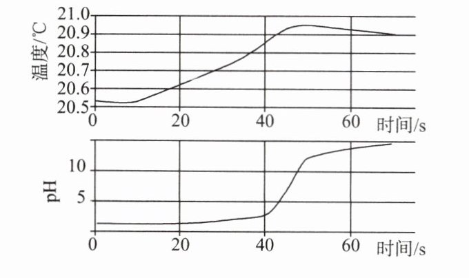 4. 实验小组用传感器探究稀氢氧化钠溶液与稀盐酸反应过程中温度和 pH 的变化,测定结果如图所示。下列说法不正确的是(