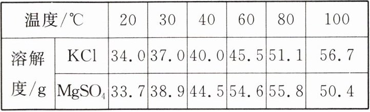 (2)海水中还含有$KCl和MgSO_{4}$等物质,其在不同温度时的溶解度如下表所示,下图是对应的溶解度曲线。